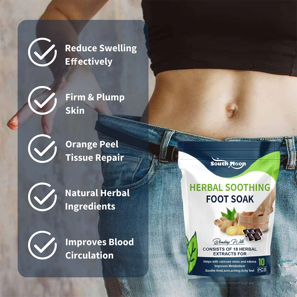 10pcs Oot Cleansing Soak Gel Natural Herbal Slimming Foot Soak Gel Dehumidification Detox Relieve Fatigue for Shape Up Care Features: 1. Natural ingredients: This product is a herbal shaped foot bath bag with 10 specifications, including natural herbs such as ginger, saffron, mugwort, pepper, and motherwort and angelica. 2. Safe use: It can alleviate body fatigue, shape the body, repair leg veins, and is safe to use without any side effects. But it is not applicable to pregnant women. 3. Promote slimming: By stimulating the breakdown of fat cells in the body, the legs and body naturally become thinner. 4. Moisture removal: high-quality herbal extracts are integrated into the foot gel. The foot is the largest pore of the body, which can remove excess water and toxins in the body, thus reducing the impact of the accumulation of "moisture" and the blockage of the lymphatic system on obesity and weight gain. 5. Relaxing the body: A relaxing foot soaking experience can promote blood circulation and fat cell metabolism, thereby achieving significant weight loss effects, while alleviating fatigue in both feet and body after prolonged work. Specification: Item Type: Foot Care Tool Number of Pieces: COMBO Origin: Mainland China Type: Foot Patch Model Number: Foot Soak Gel Power Source: None Electric Quantity: 10pcs Ingredients: ginger, saffron, mugwort, pepper, motherwort and angelica sinensis Not applicable to: pregnant women Note: