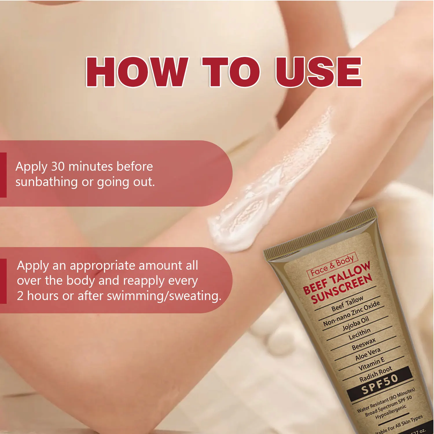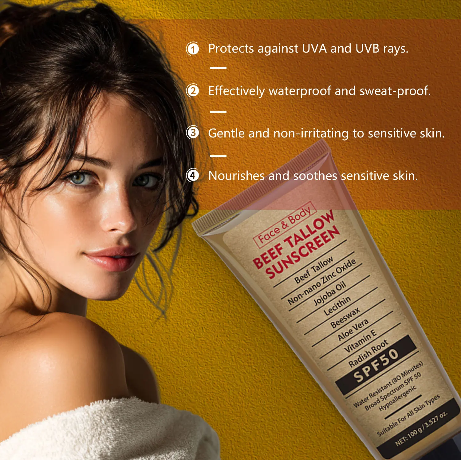 100g Organic Grass-Fed Beef Tallow Sunscreen SPF50 Long-lasting Sun Protection Face & Body Sunscreen Waterproof and Sweat-proof