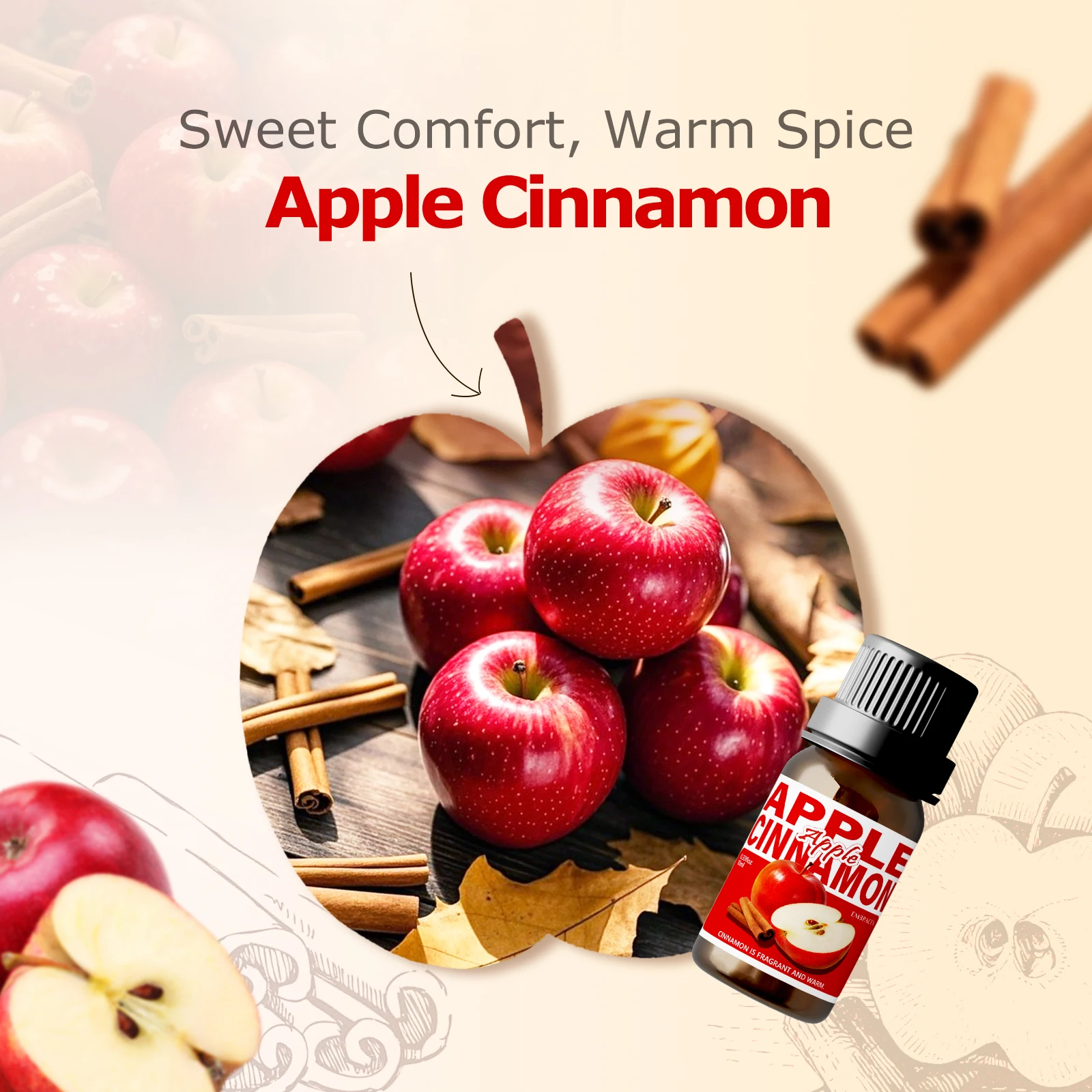 10ml Apple Cinnamon Essential Oil Perfume Aromatherapy Oils Sweet Fragrance Funny Gift For Women Alcohol-Free Skincare Hair Care