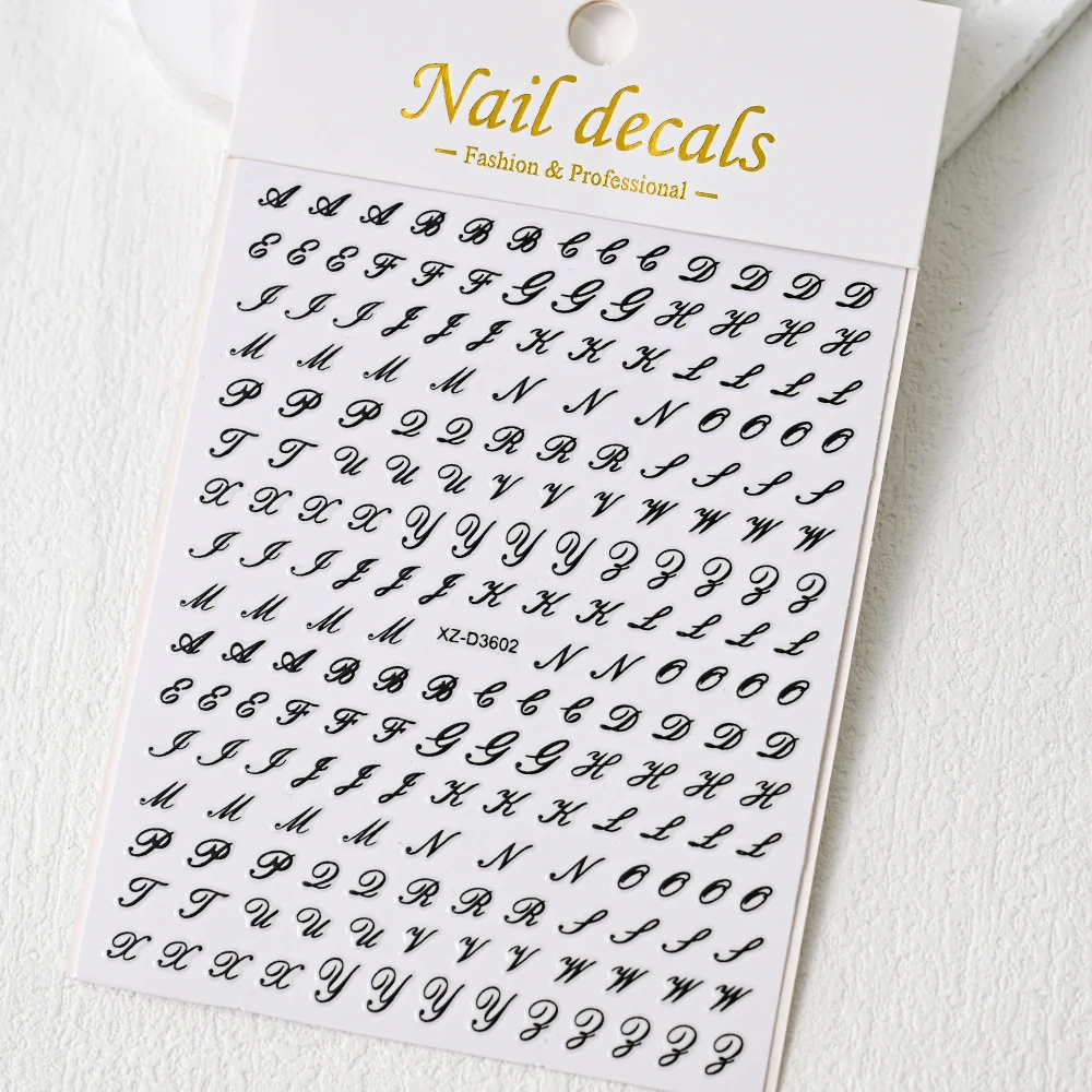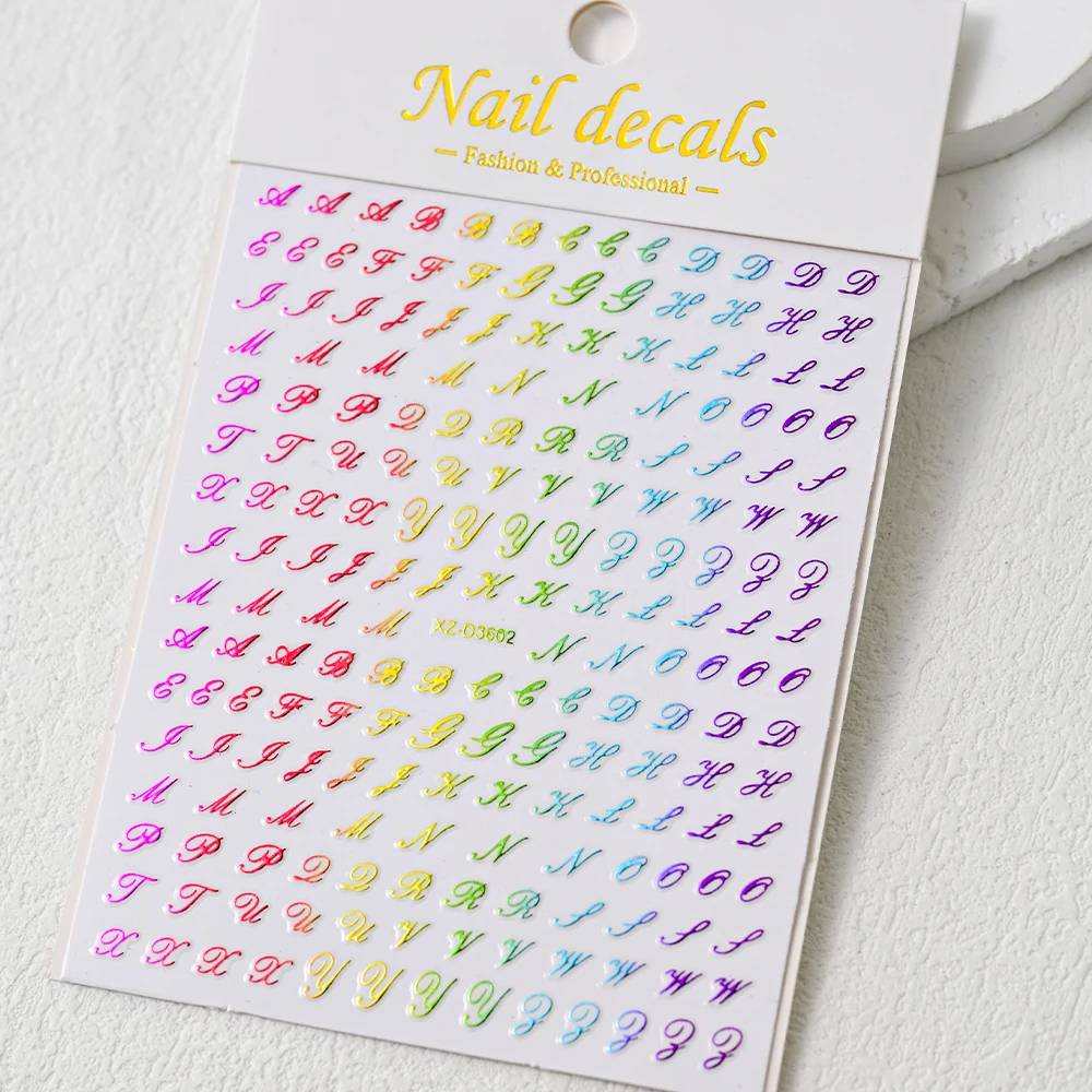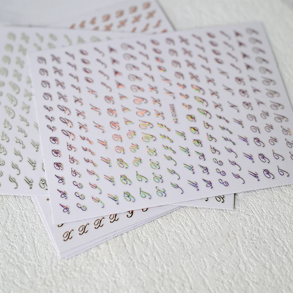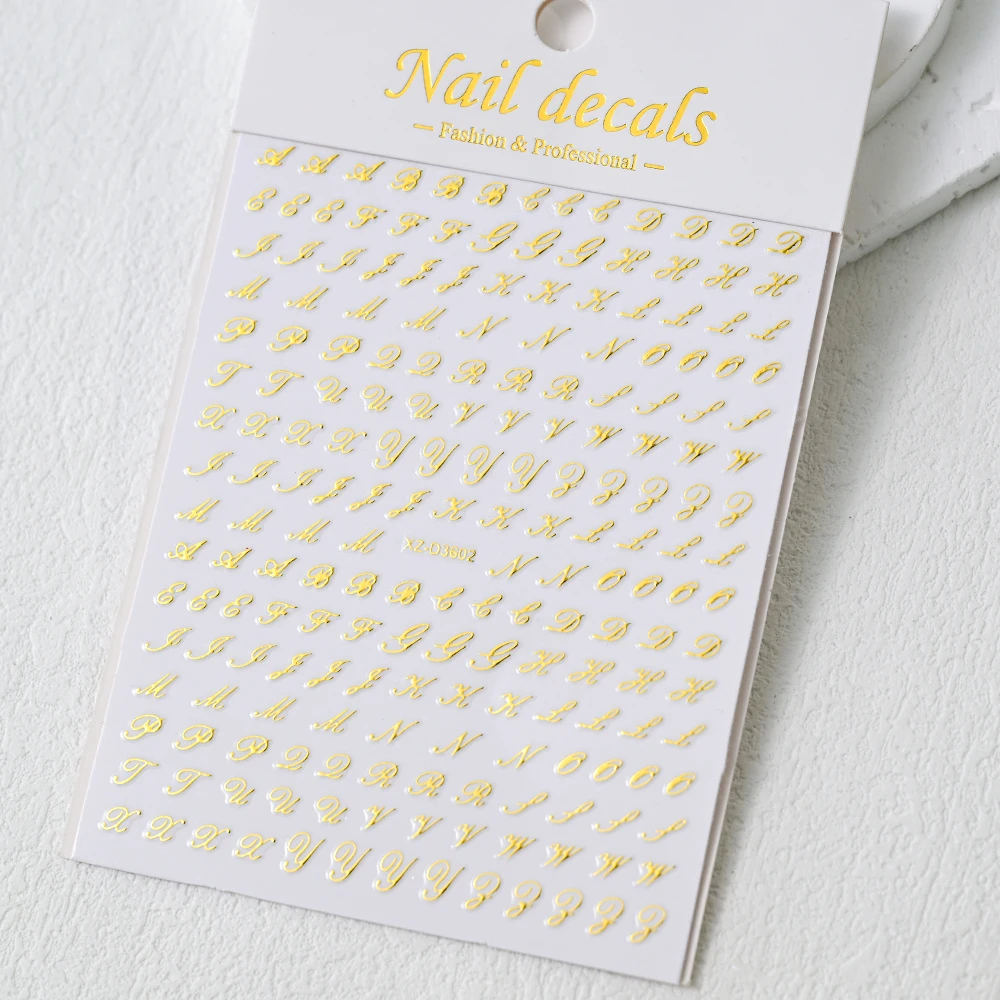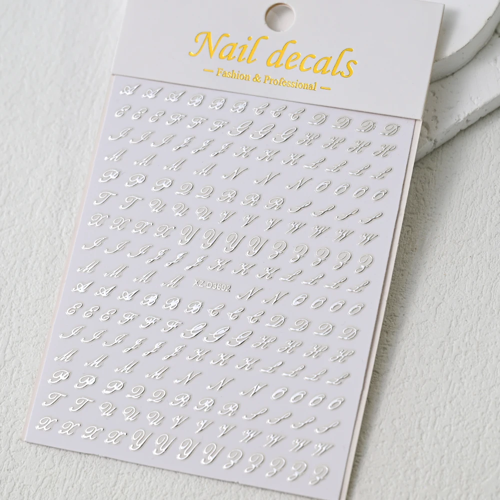 1Pc 3D Roman Letter Nail Stickers Gold/Silver/Black/Laser Alphabet Self Adhesive Decal Y2K English Words/Number Manicure Sliders