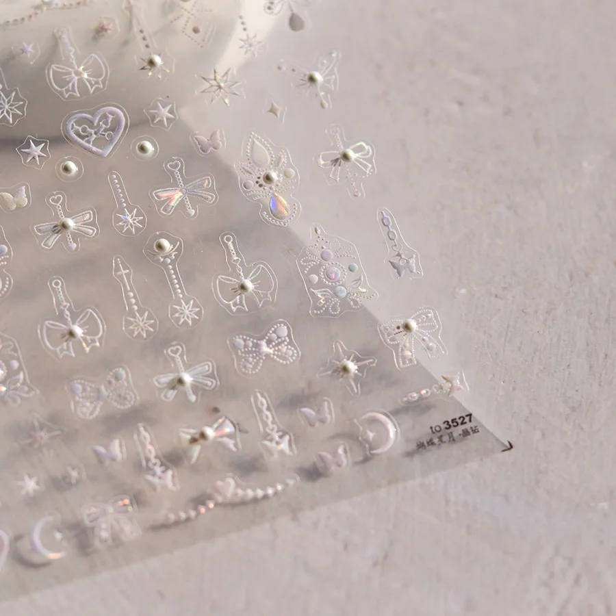 1pcs Crystal Diamond Nail Stickers 5D Laser Bowknot Star Moon Pearl Totem Heart 3D Adhesive Japanese Nail Art Decoration Sticker