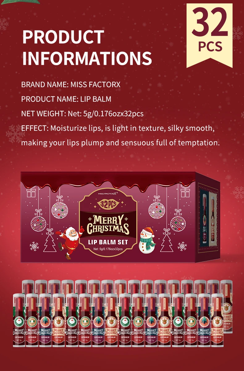 32PCS/Box Christmas lipstick Set Hot Red Wine lipstick Lasting Waterproof Moisturizing Glossy Lip Color