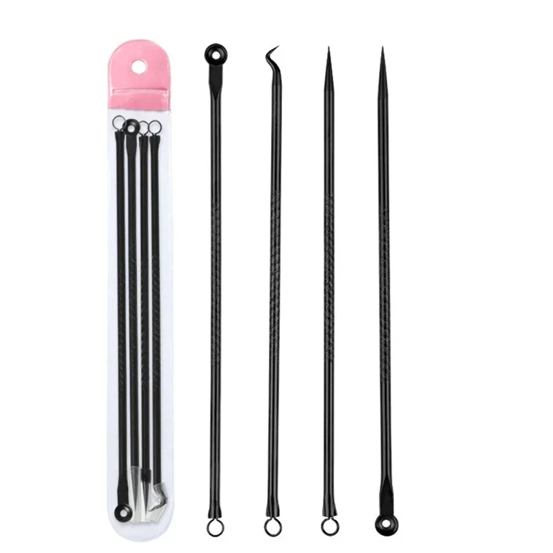 4PCS Acne Blackhead Comedone Black Spot Pimple Blemish Remover Skin Care Women Beauty Acne Treatment Pore Cleanser Needle Hook