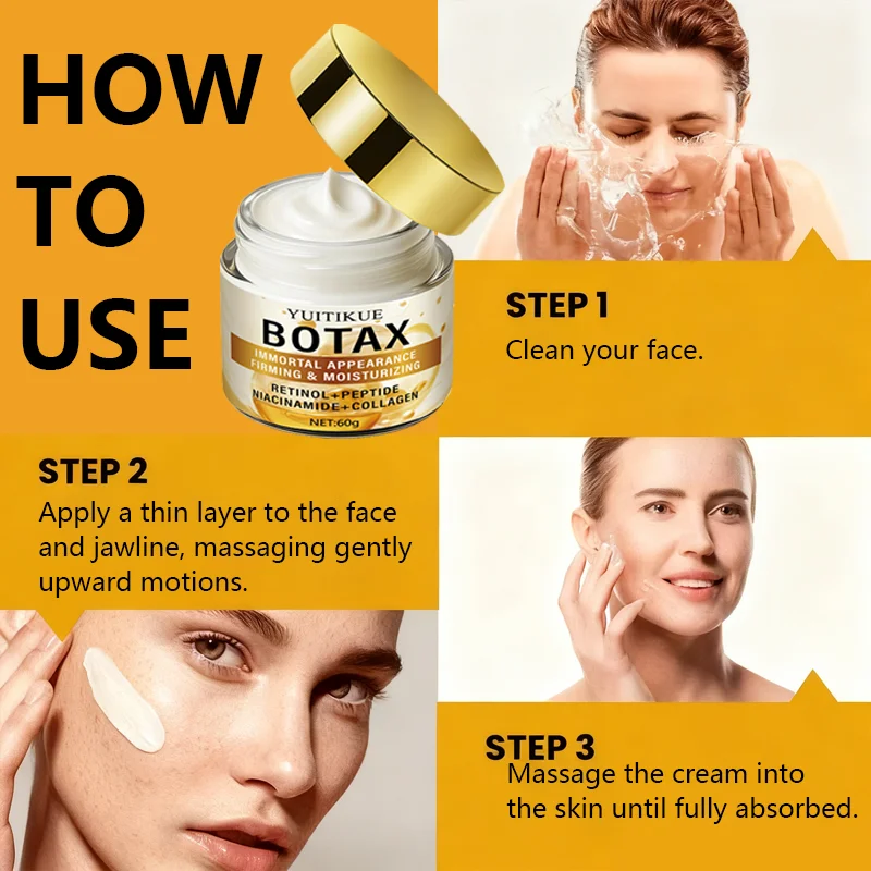 BOTAX face cream with an enduring appearance, firmness, and hydration. Retinol, peptides, niacinamide, collagen