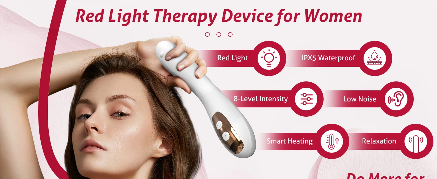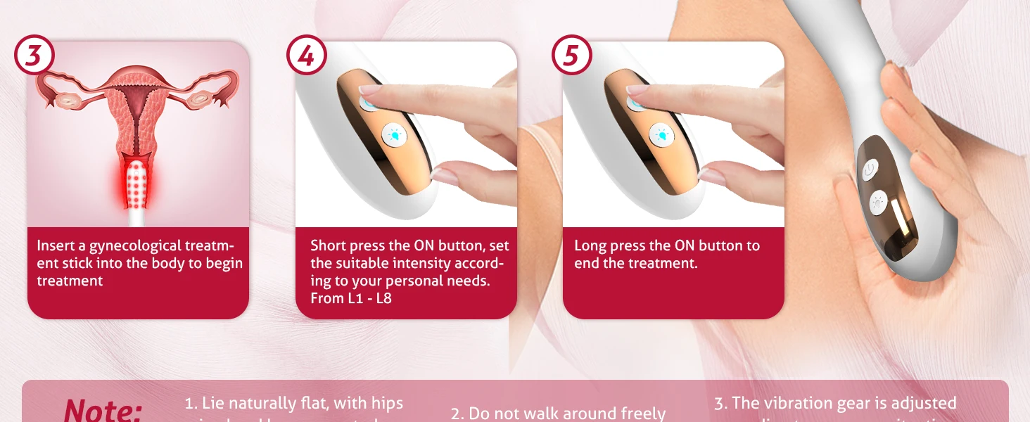 Intelligent Heating: Traditional female health device can have an uncomfortable cold sensation, but our red light wand features an intelligent heating function that maintains a constant temperature of around 100℉, simulating a comfortable body temperature. This effectively alleviates gynecological discomfort, making you feel warm and comfortable during the process, relaxing your mind and body, and enhancing your overall care experience.
