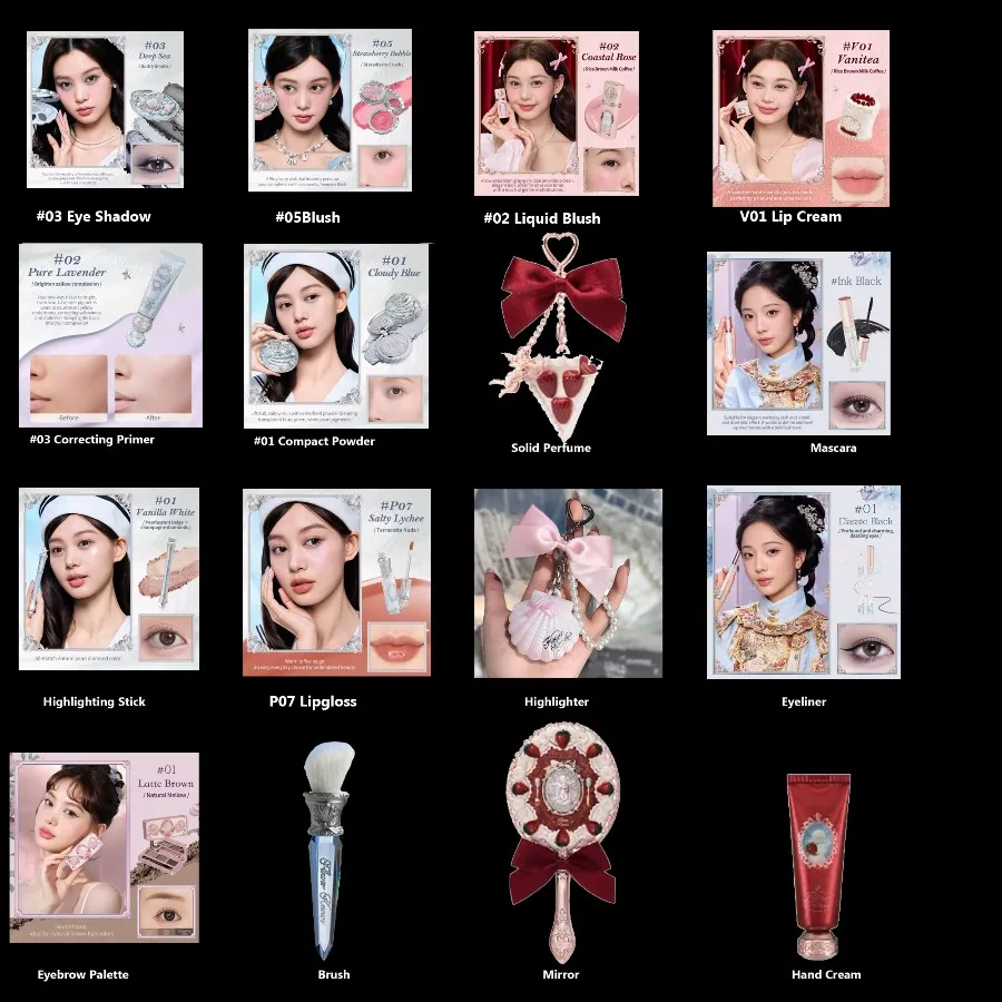 【All In One Makeup Kit】 Contains 16pcs Flower know's Products, It is allowed to change different colors of the same product (for example, you can change the angel eye shadow into strawberry Cupid eye shadow or other available eye shadow of other series of Flowerknowledge, that is, eye shadow can only be changed into eye shadow, powder blusher can only be changed into powder blusher of other colors, and so can lipstick)