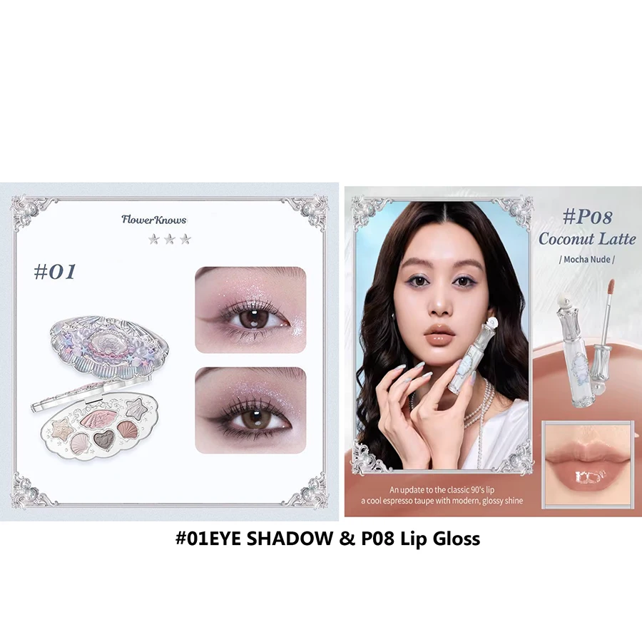 Flower Knows Shells Jewel Makeup Set for Women - Eyeshadow Blush Lip Glaze Full Kit - Gift Set