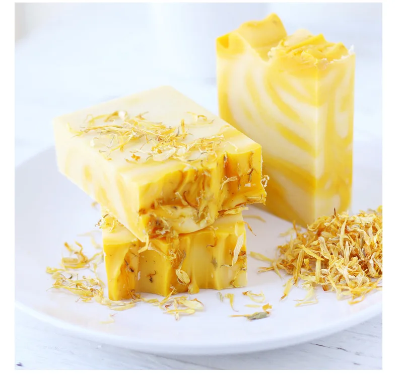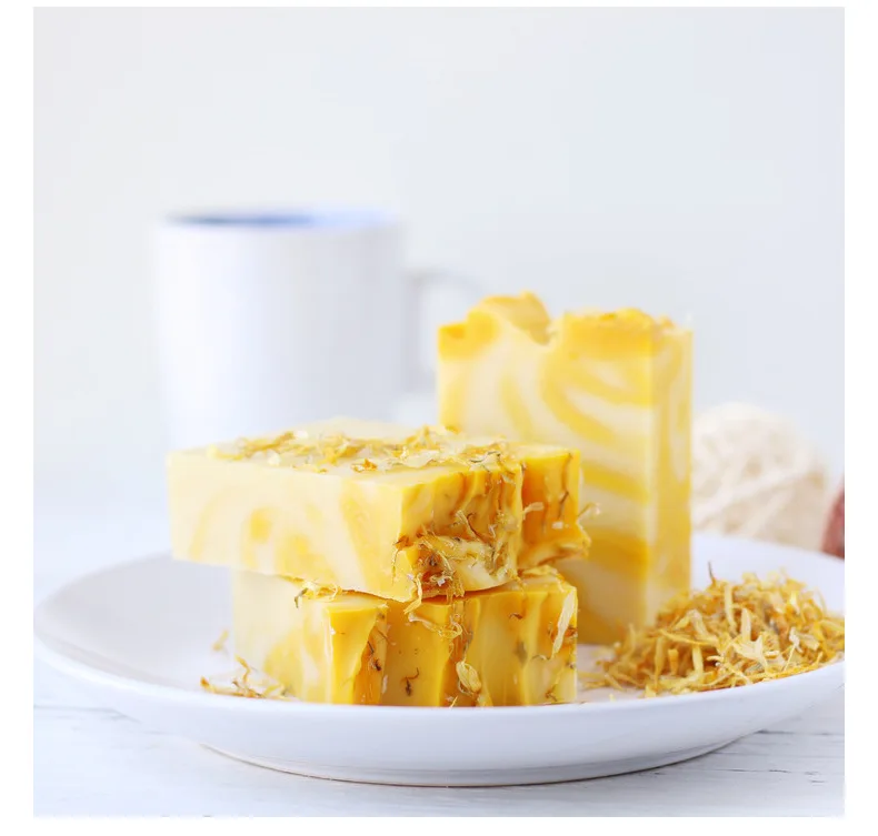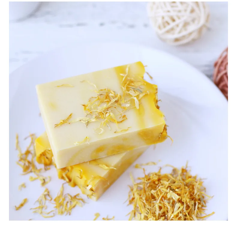 Jasmine soap ingredient: Calendula pedicel soaked in EV olive oil, coconut oil, mustard oil, cocoa butter butter, rose hip oil, almond nut oil, angelica dahurica, bletilla striata, atractylodes macrocephala, white poria cocos, paeonia lactiflora, milk, purified water, sea water alkali