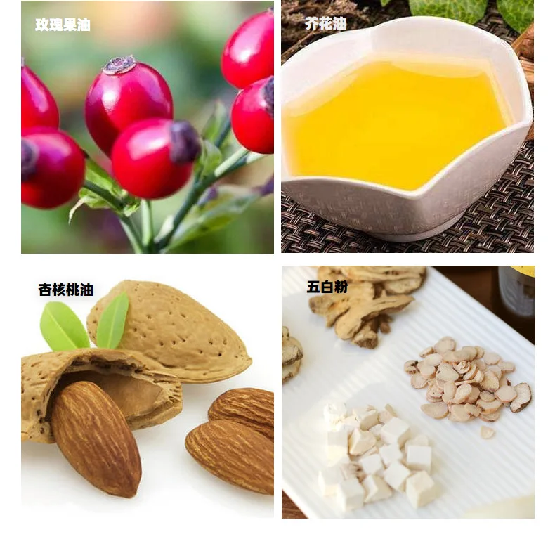 Jasmine pedicel soaked EV olive oil, sweet almond oil, shea butter, avocado oil, jasmine cream, goat milk ice, jasmine pure dew, jasmine essential oil, Huaishan medicinal powder, purified water, sea water alkali