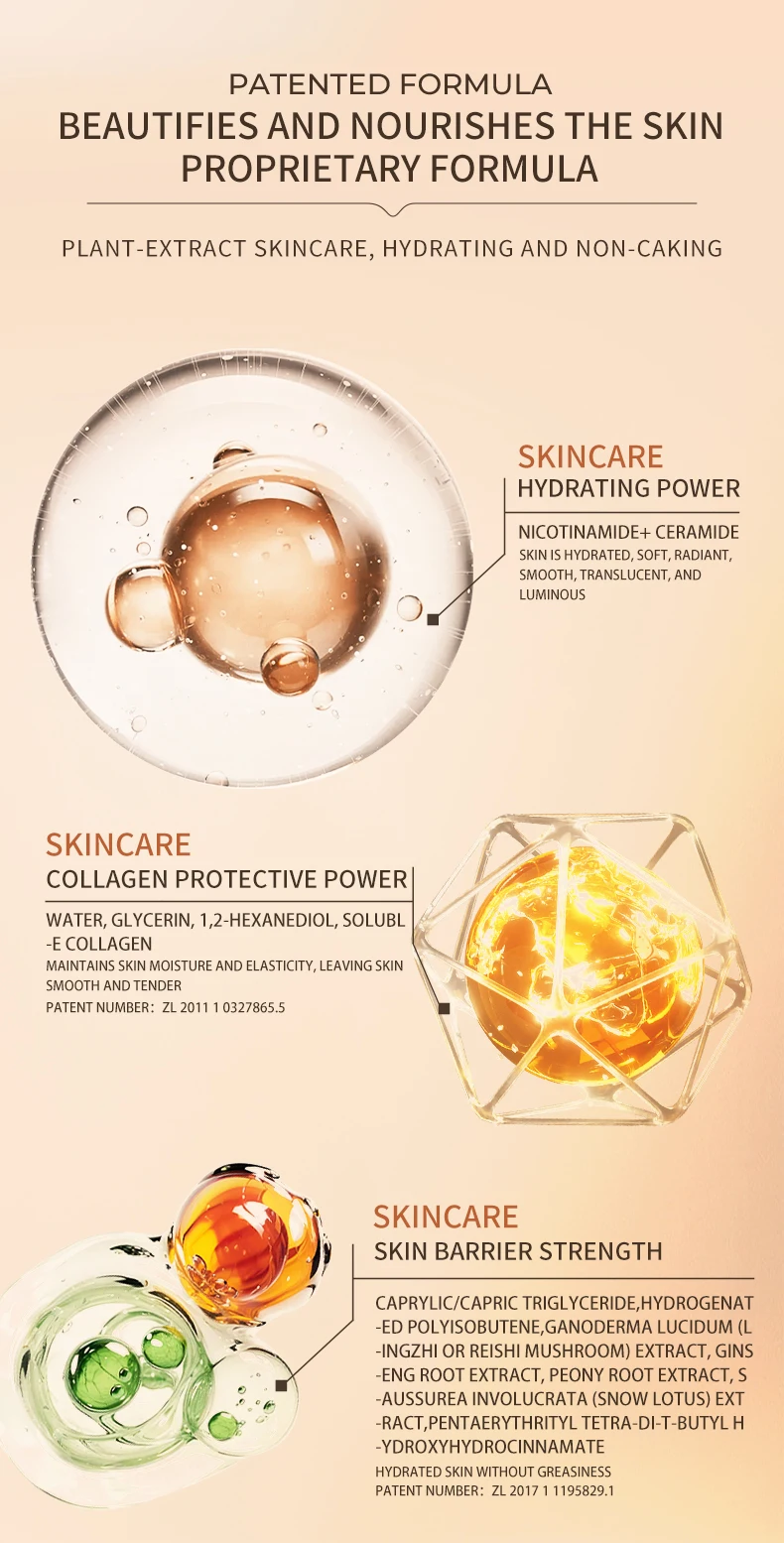 Beyond makeup, it is a treating foundation fortified with a patented blend of Ceramide and Niacinamide to reinforce the skin's moisture barrier, alongside extracts of Snow Lotus, Peony, and Ginseng to soothe and revitalize, promoting a healthier, more radiant look with every wear.