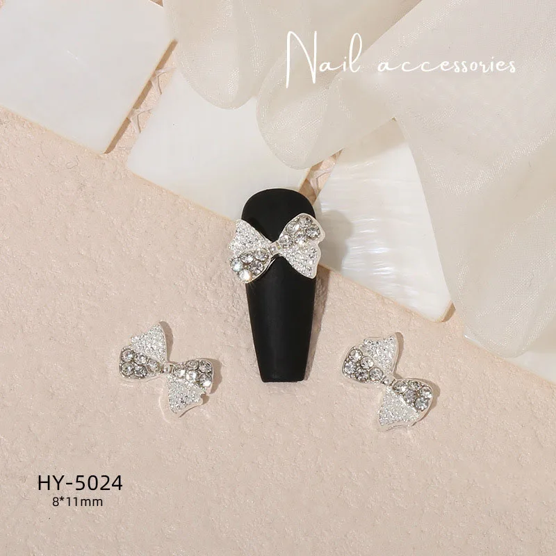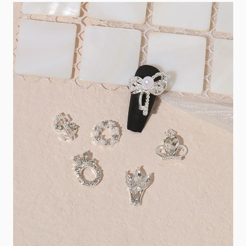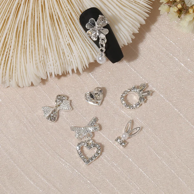 Mix 10/15pcs Shaped Rhinestones Nail Charm Silver Bowknot Nail Dangles Luxury Metal Heart 3D Nail Art Decoration Manicu