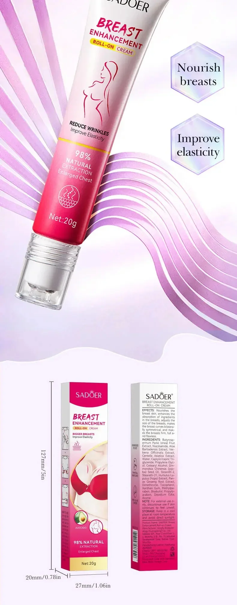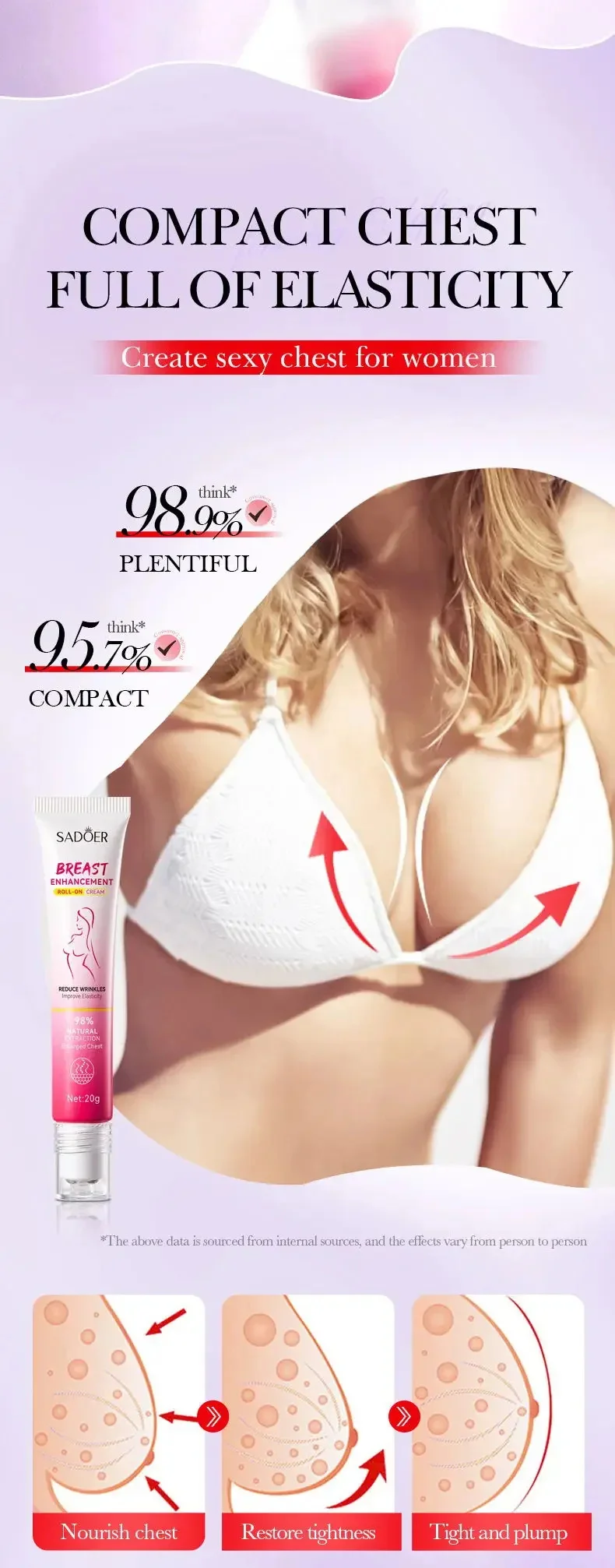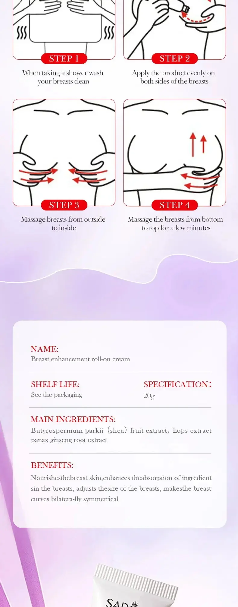 1. High-quality natural plant extracts breast essential Cream for women. Useful and safe, it will let you be more confident and more attractive by enlarging your breast.
