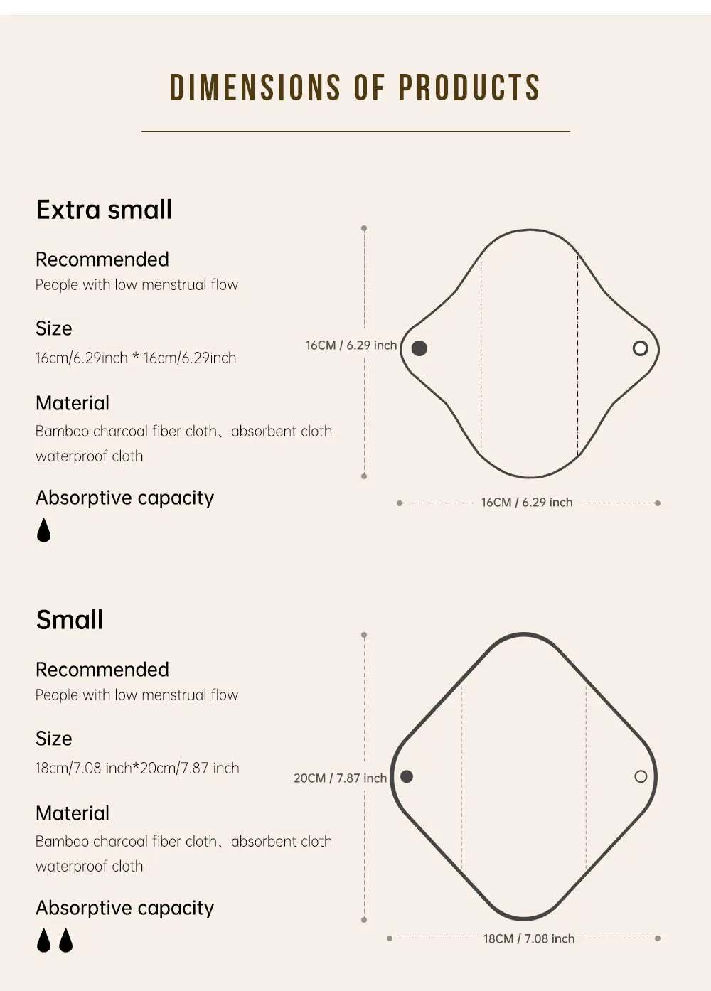 Reusable Pads Set 4 Sizes for Choice Pure Black Reusable Menstrual Pads Super Absorbent Sanitary Napkins.