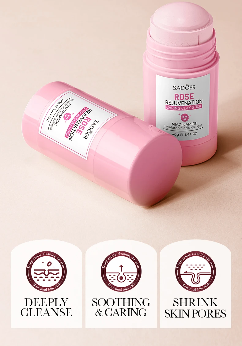 SADOER Green Tea Rose Face Masks Stick Clay Mask Shrink Pores Deep Blackhead Remover Facial Cleansing Moisturizing Facial Masks